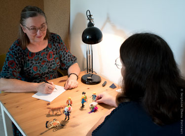 Playmobils et Figurines vont servir à "représenter" les différents membres de la famille comme une constellation classique avec « représentants physiques » : énergies, problématiques, blocages et leur « mise en scène » permet de comprendre ce qui se joue en chacun de nous et dans notre cercle relationnel.